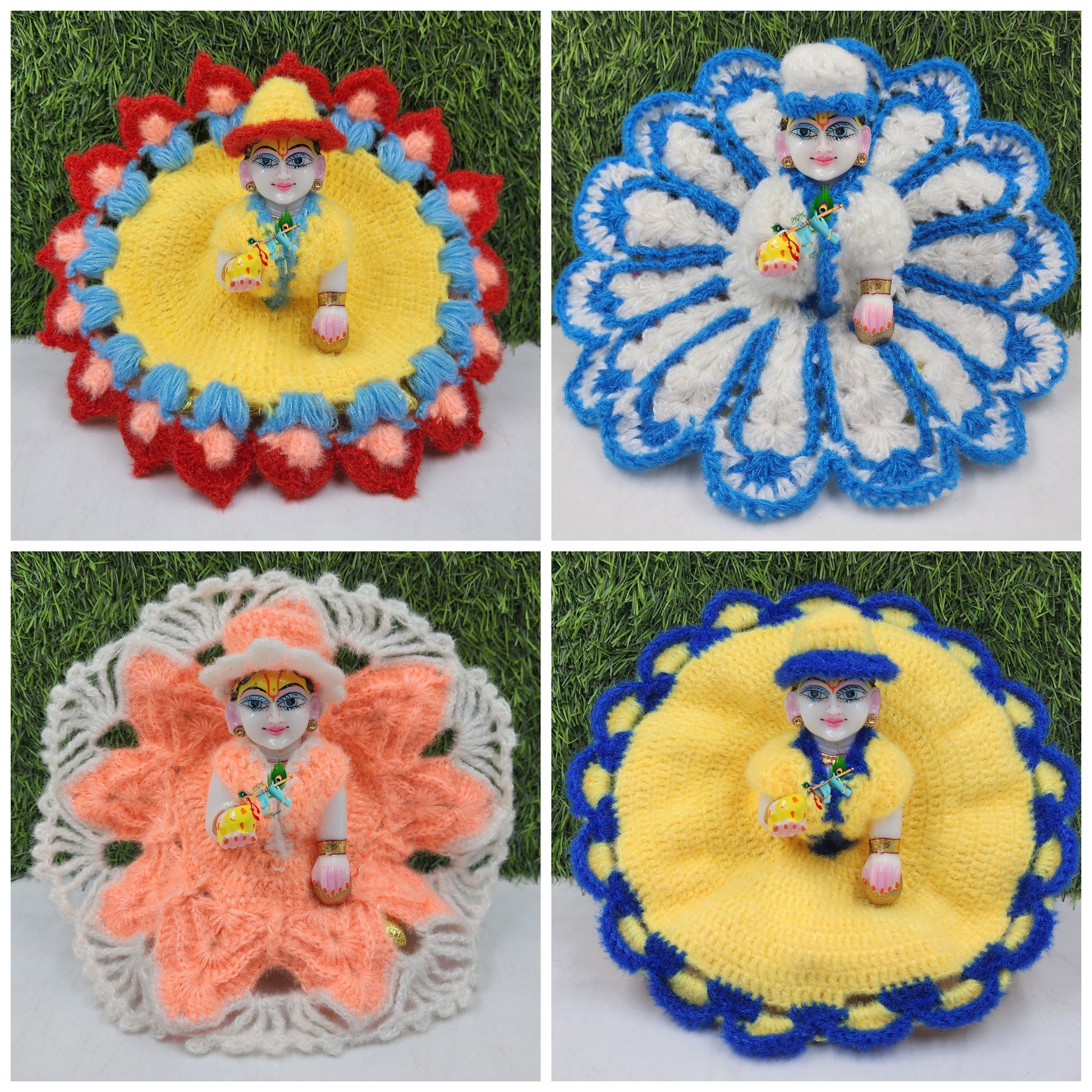 Adorn your beloved Laddu Gopal Ji with our premium Woolen Dress Combo Pack of 4, designed to keep your deity warm during the winter months while adding a touch of elegance. Each dress is crafted from soft, high-quality wool, ensuring comfort and warmth for your Kanha Ji. The combo includes four intricately designed dresses in vibrant colors, perfect for daily puja or festive occasions. Let your Laddu Gopal Ji shine in style and devotion with these beautiful woolen outfits!